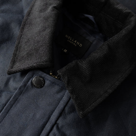 Navy Double Breasted Overcoat in Recycled Wool twill.